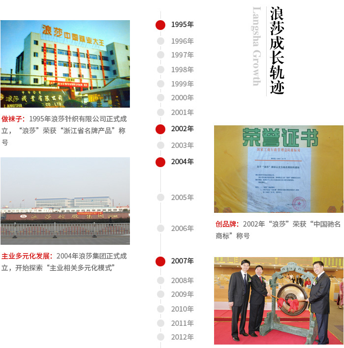 浪莎成立于1995年,是目前國內(nèi)襪子專業(yè)生產(chǎn)企業(yè),也是行業(yè)內(nèi)響亮的品牌企業(yè)。2008雖是金融風(fēng)暴引發(fā)的企業(yè)困難之年,但浪莎還是以40%的業(yè)績?cè)鲩L,實(shí)現(xiàn)銷售額5億美金。經(jīng)過二十一年的發(fā)展。在國內(nèi),人們提起襪子,就會(huì)想到浪莎,想起浪莎,就會(huì)想到那句經(jīng)典的廣告詞:浪莎,不只是吸引!