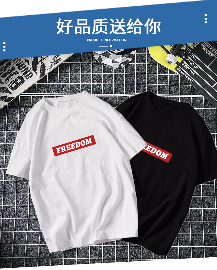 【100%純棉】2021春季爆款t恤男士韓版潮流字母印花短袖圓領T恤男