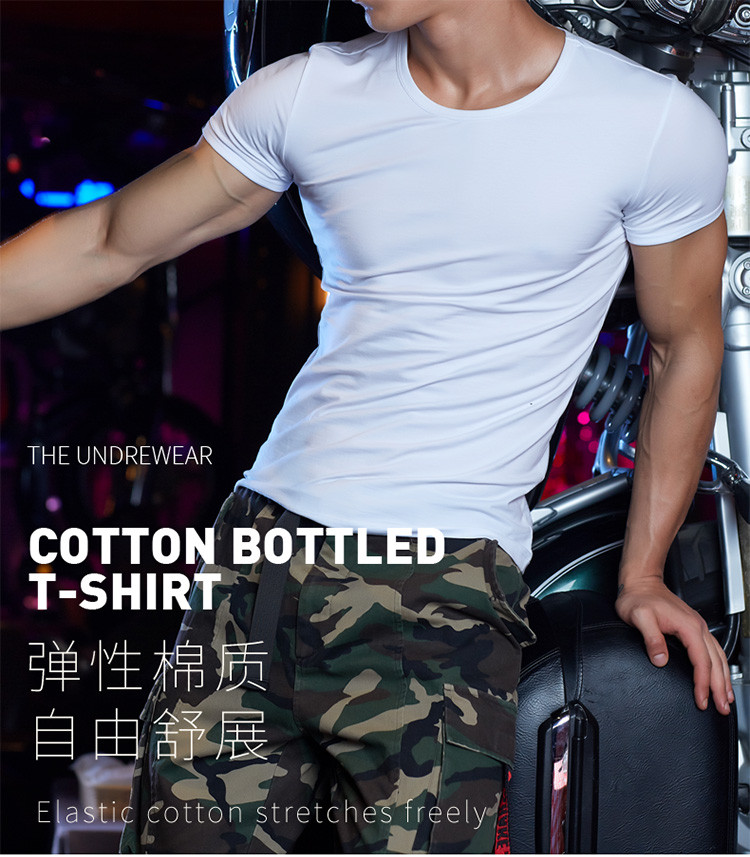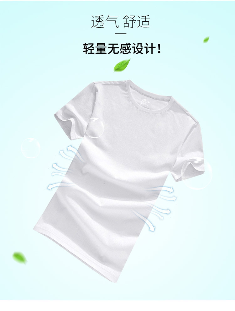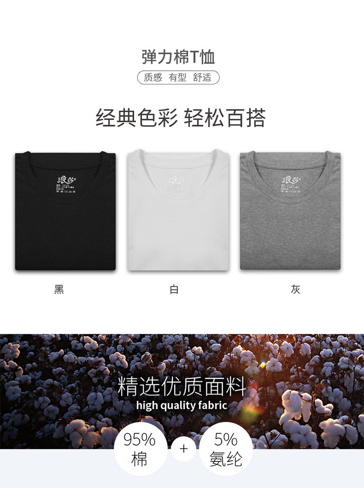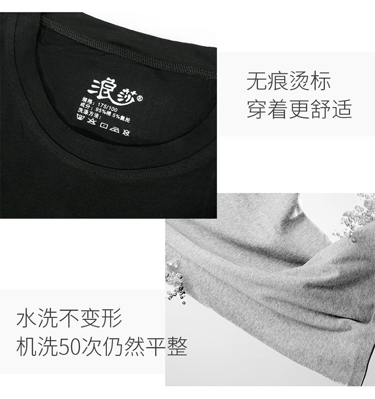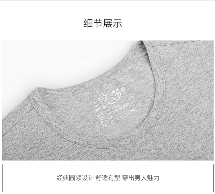 2件浪莎透氣春夏簡約男士彈力棉圓領(lǐng)運動T恤領(lǐng)休閑短袖