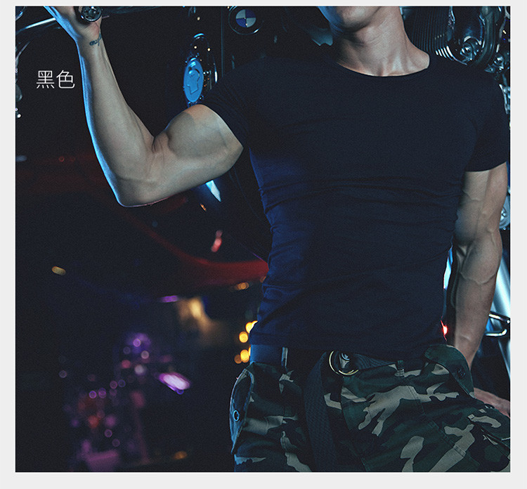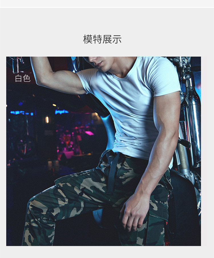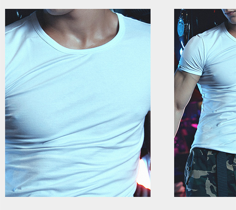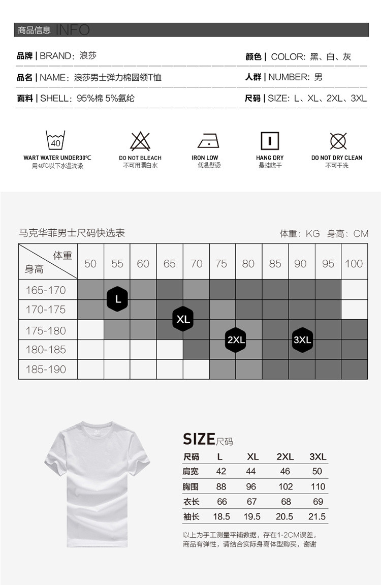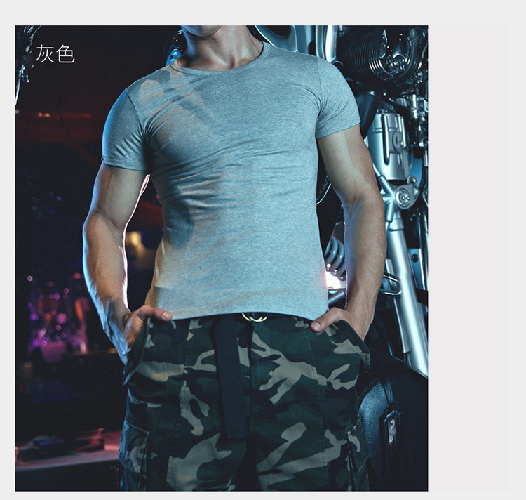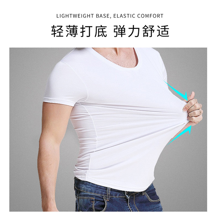 2件浪莎透氣春夏簡約男士彈力棉圓領(lǐng)運動T恤領(lǐng)休閑短袖
