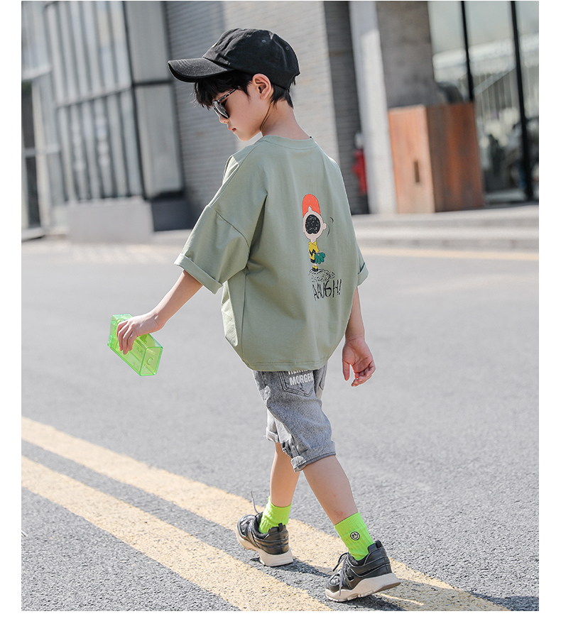 浪莎男童短袖t恤純棉2021新款中大童夏裝中童半袖韓版兒童裝上衣