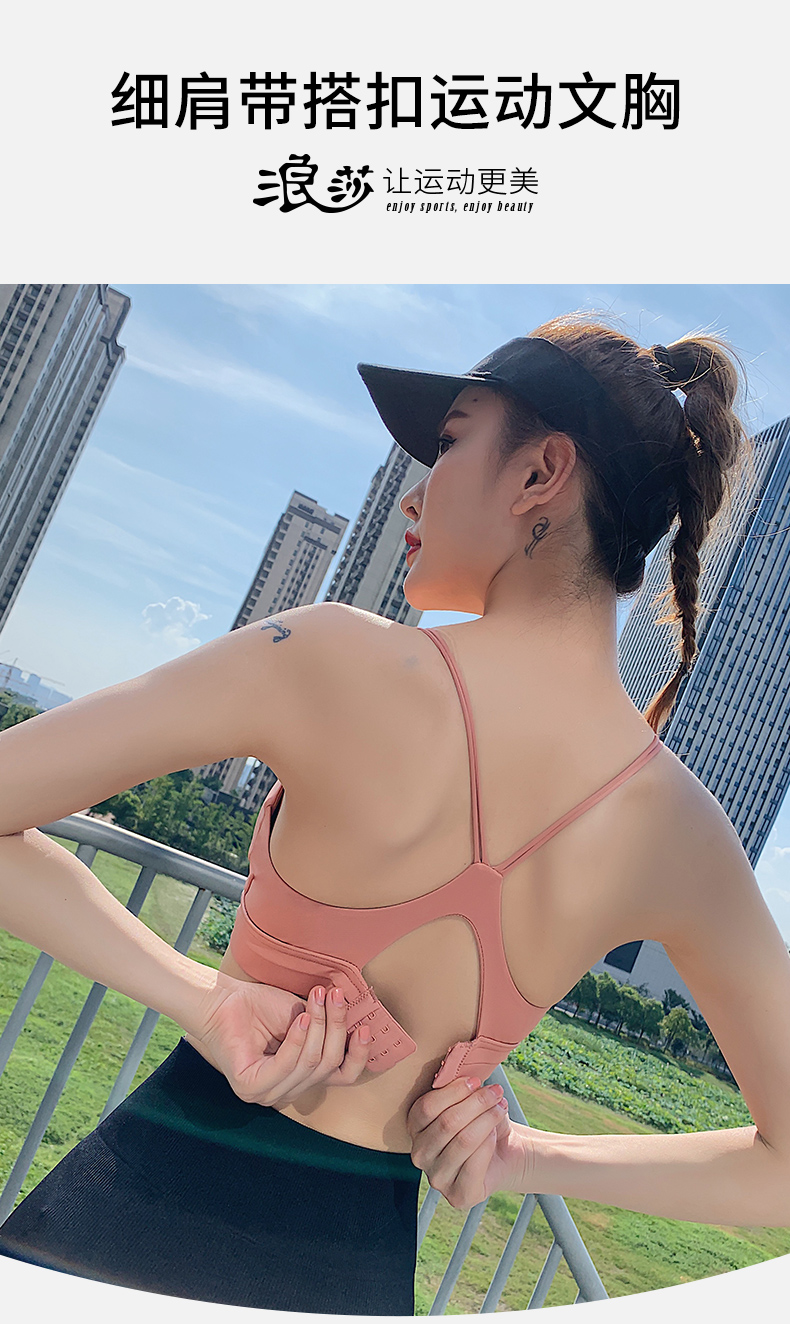 浪莎運(yùn)動(dòng)內(nèi)衣女防震跑步聚攏定型搭扣瑜伽背心細(xì)肩帶美背健身文胸