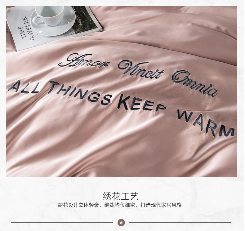 浪莎四件套水洗真絲北歐風被套床笠床單裸睡冰絲春夏秋季床上用品