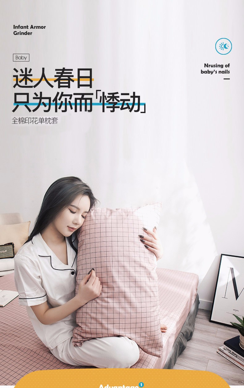 浪莎全棉枕套一對(duì)裝純棉印花枕頭套單人學(xué)生宿舍枕芯套48x74cm