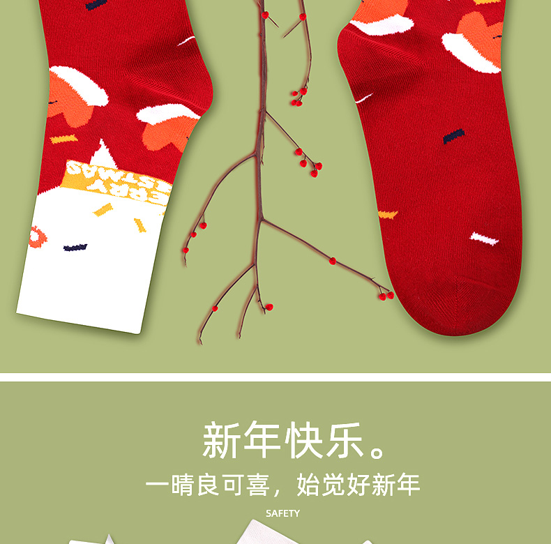 浪莎圣誕襪子女中筒襪秋冬季可愛本命年紅襪子圣誕節禮盒加厚棉襪