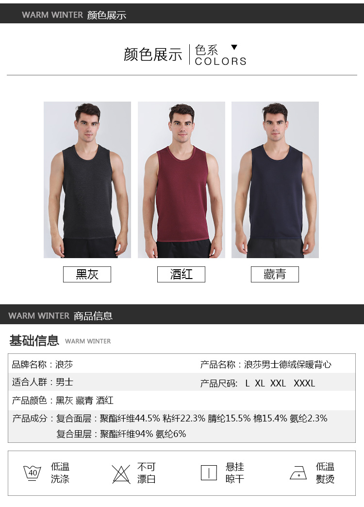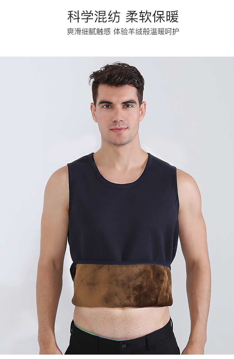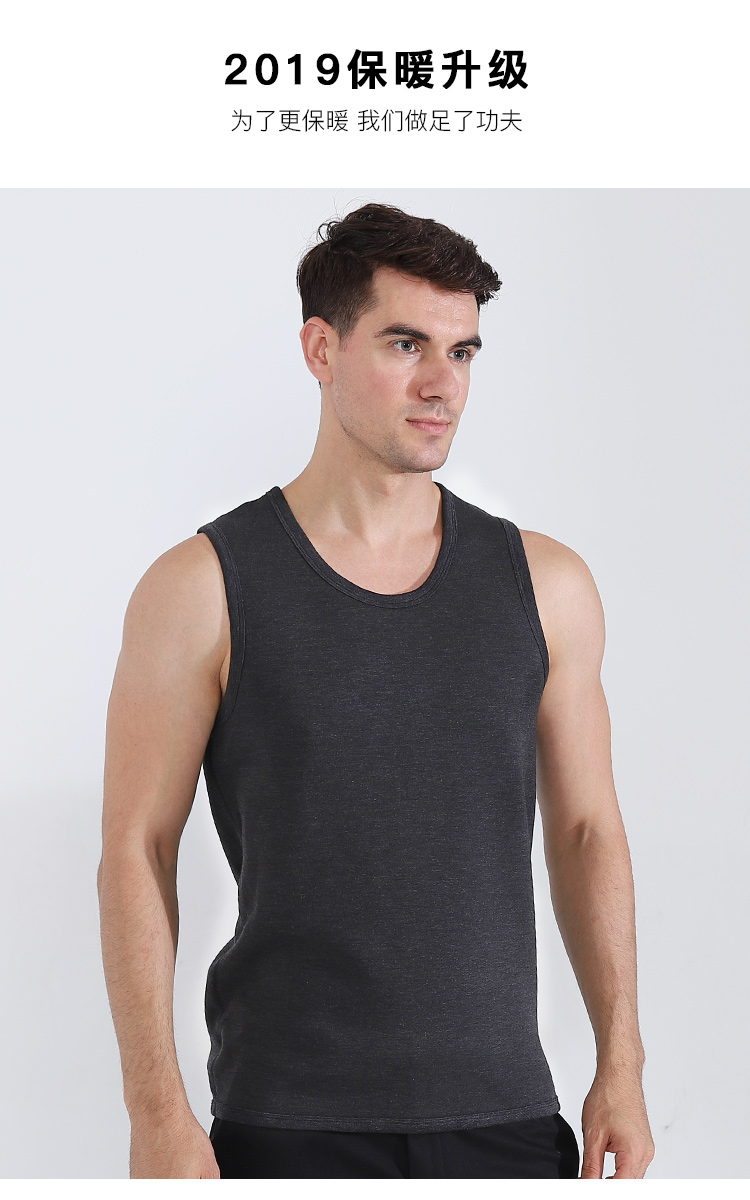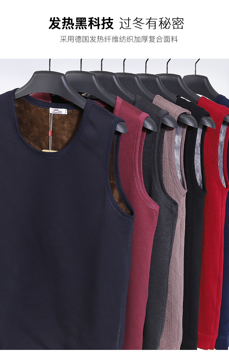 浪莎自發(fā)熱德絨保暖背心男士加厚加絨冬季上秋衣單件打底保暖內(nèi)衣
