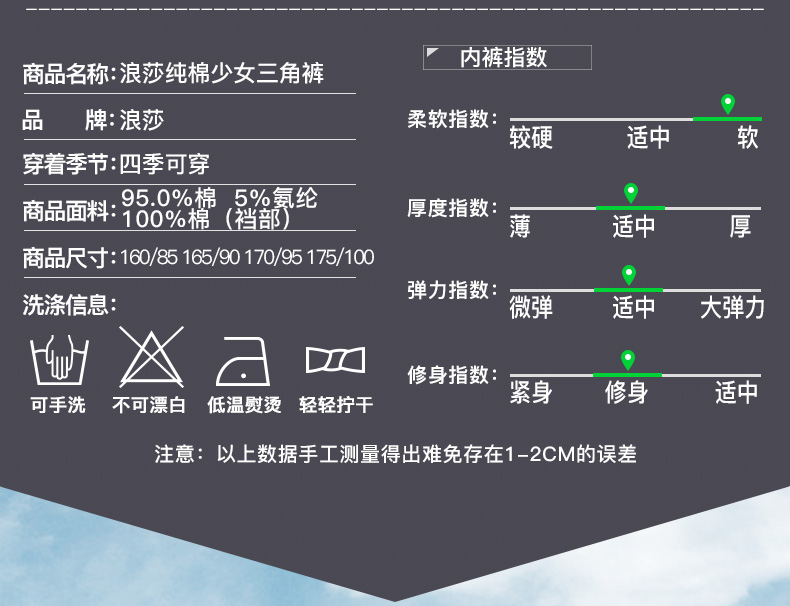 浪莎女士內褲女三角褲中腰春夏少女純棉面料透氣全棉日系女生褲衩